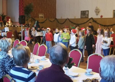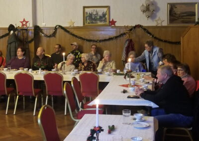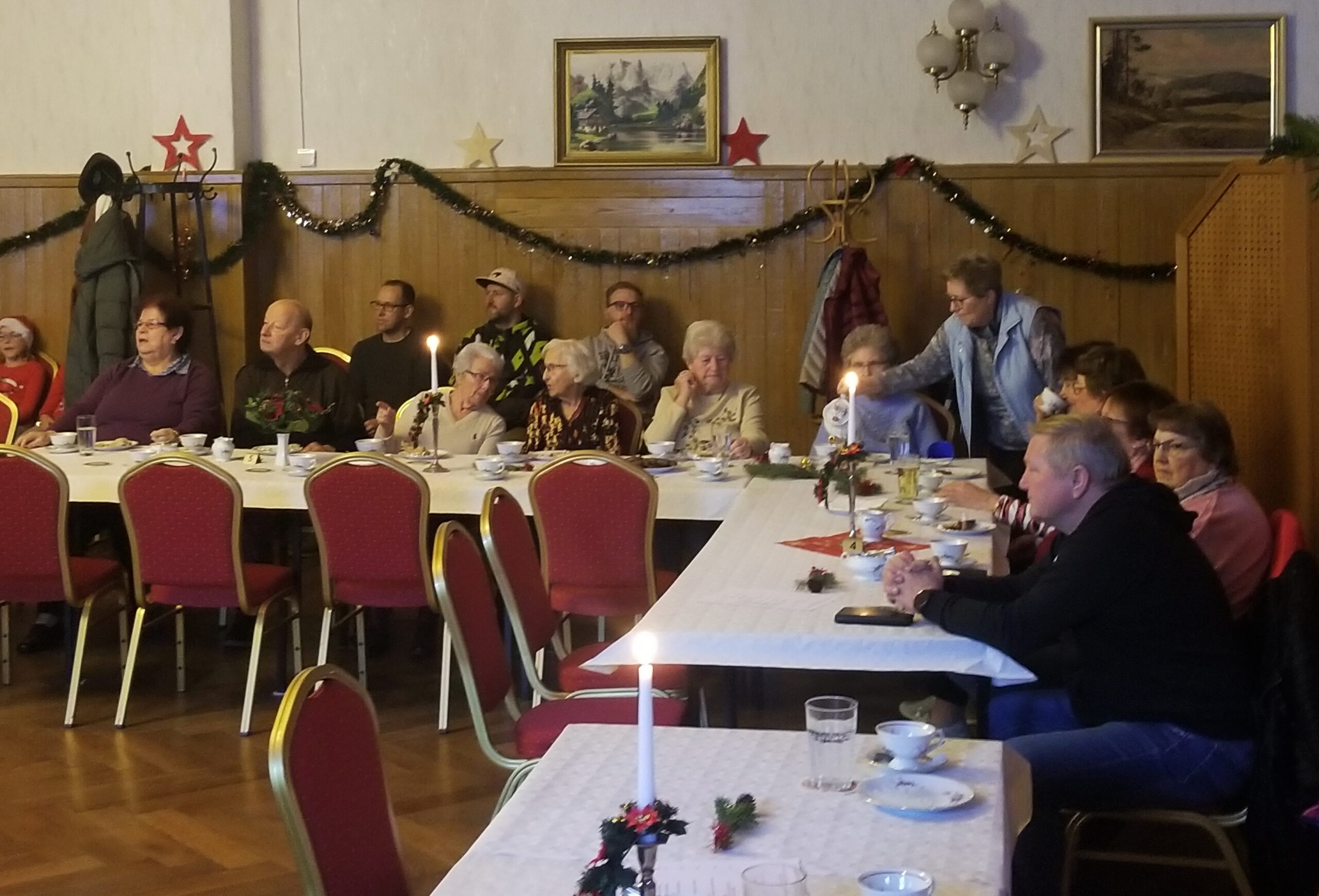 Samstags krähte es wie jedes Jahr ab 6 Uhr im Zelt. Eifrig wurde gezählt, welcher Hahn am meisten seine Stimme erhob. Ab 10 Uhr packten fleißige Helfer mit an, auch dieses Jahr ein „Straßenkaffee“ aufzubauen. Dank Familie Hippe konnten viele Stühle und Tische unter den Pavillons aufgestellt werden. Beim Genuss von Erbensuppe mit Bowu oder Wurstgulasch mit Nudeln aus der Gulaschkanone fanden diese schon ab 11 Uhr reichlich Kundschaft. Der Anglerverein bot wie jedes Jahr leckere selbstgeräucherte Forellen an. Das „Straßenkaffee“ mit tollen selbstgebackenen Kuchen, dieses Jahr samstags und sonntags betreut von den Karnevalisten des 1. TCV, fand reißenden Absatz von Jung und Alt.